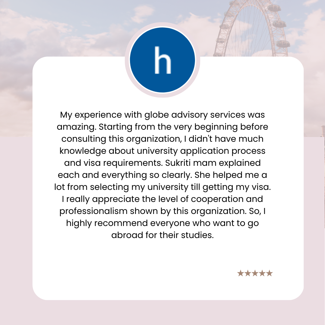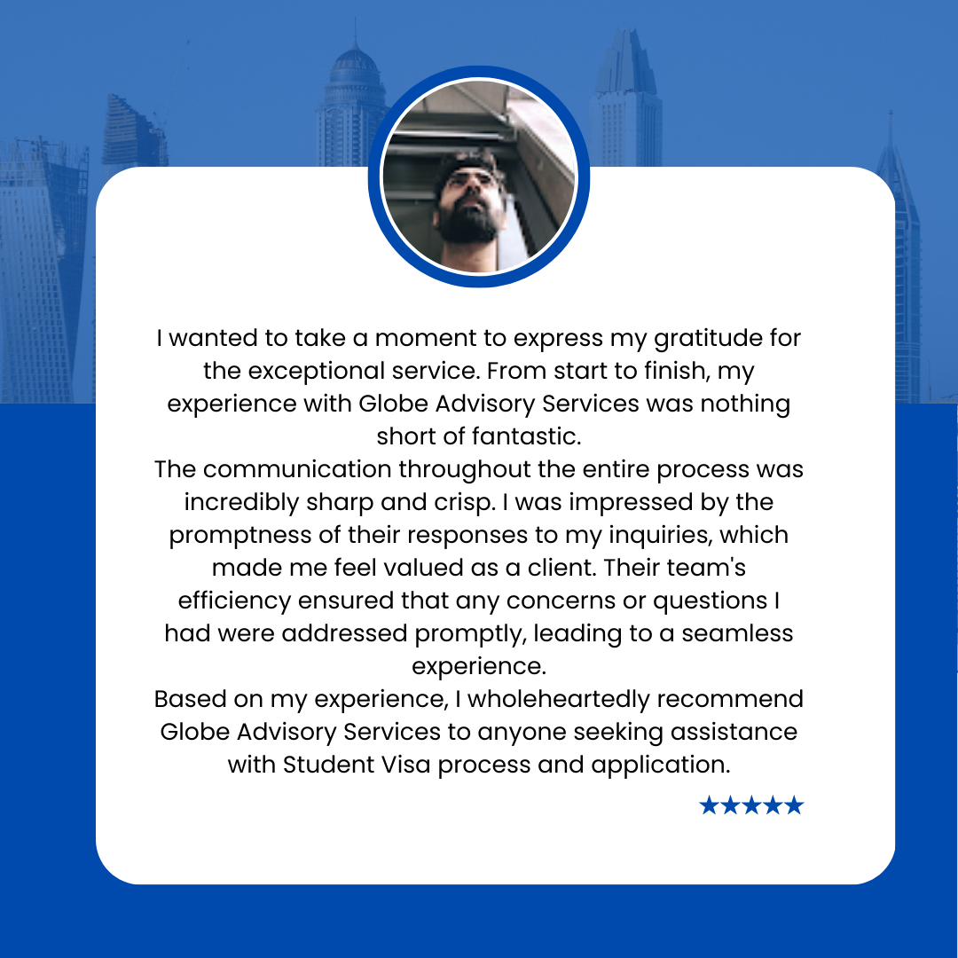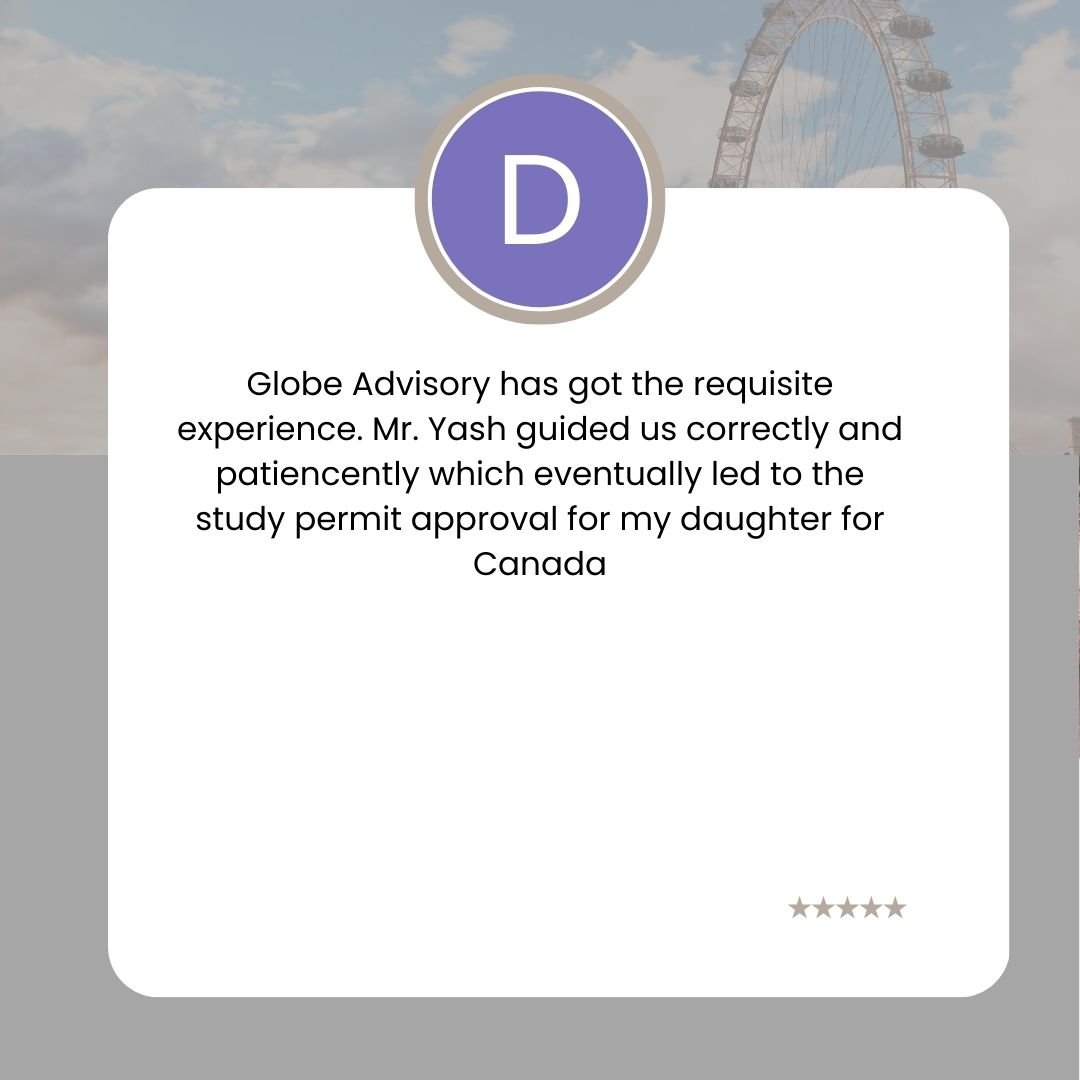 Globe Advisory has got the requisite experience. Mr. Yash guided us correctly and patiencently which eventually led to the study permit approval for my daughter for Canada 🇨🇦